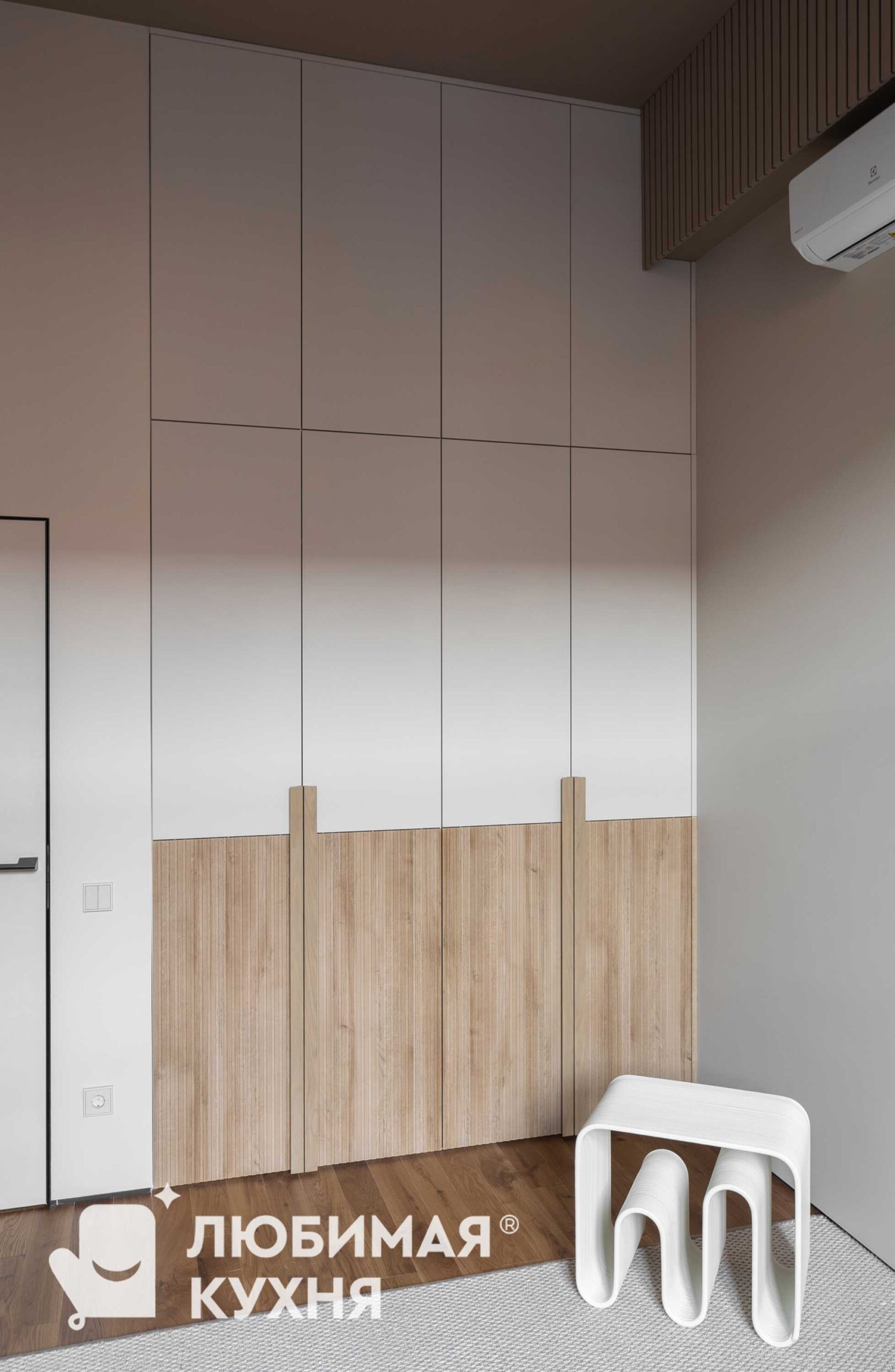 Закрытая часть включает секции со штангой для одежды, выдвижные ящики для белья, обувницы и регулируемые полки. Открытая зона — стеллажи для книг, витрины для коллекций или ниши под технику. Такая система хранения охватывает все категории вещей — от повседневных до декоративных.